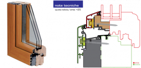 Infisso per esterni Legno Alluminio sp. mm. 90 - DESCRIZIONI: 4 guarnizioni di tenuta mod. SCHLEGEL - vetro camera disponibile DA : 1 camera o 2 camere (triplo vetro) SPESSORE MAX VETRO MM. 45 - Colori a scelta figurati legno - colori Ral - Bicolore . Chiusura di serie antieffrazione Maniglie di serie . Infisso adatto per la sostituzione di vecchi infissi e specifico per nuove abitazioni con classe superiore A++